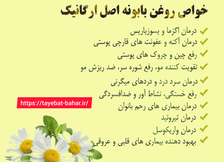 چند قطره از آن را به ترکیب حنای خود اضافه کنید تا های لایت های زیباتری داشته باشید. پس از حمام و خشک کردن نسبی موها با حوله ، چند قطره از روغن بابونه را به موهای خود بمالید تا درخشندگی خاصی به موهای شما بدهد.